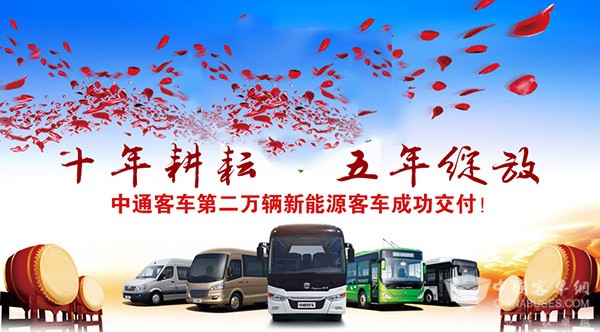 2016年5月23日,中通第二万辆新能源客车交付仪式举行。2015年10月,中通新能源客车实现了第一个万辆的销售,中通用了6年时间;第二个万辆,用了8个月时间,中通不断以加速度实现新能源客车的持续增长。目前,国内只有极少的企业完成了20000台新能源客车的销售。这也成为新能源客车企业进入第一集团的的新标杆。中通客车再一次踏上了新的起跑线。