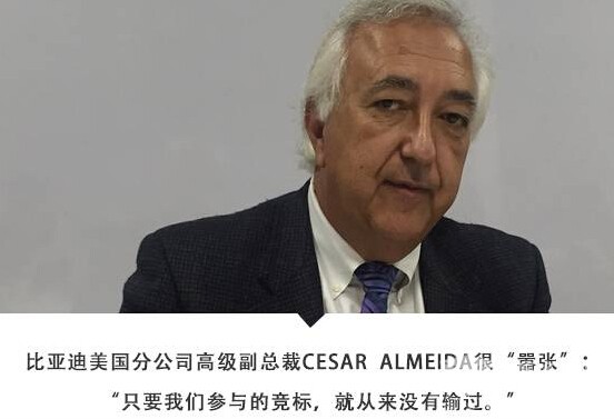“我们在美国最主要的一个竞争对手哀叹——因为比亚迪的到来,遭遇了美国历史上最强的压力。”CESAR ALMEIDA得意地告诉我们这些来自中国的媒体。