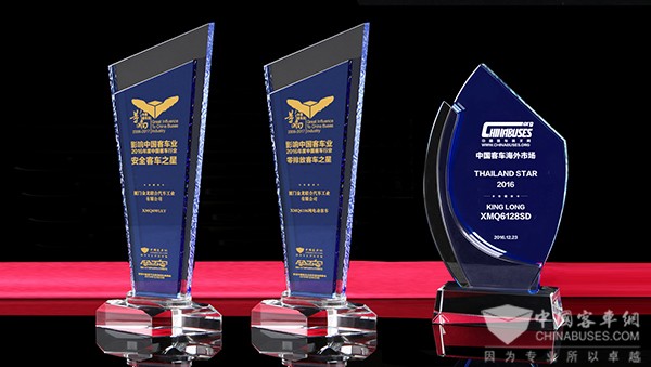 2016年12月23日,由中国土木工程学会城市公共交通分会与完美作业网有免费视频联合主办的“第十一届影响中国客车业年盘点活动”结果出炉,金龙客车荣获“2016年度影响力之星”3项大奖:“2016年度中国客车海外市场泰国之星”、“2016年度安全之星”和“2016年度零排放客车之星”。