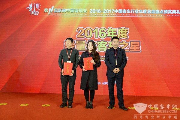 其中,扬子江客车凭借本年度杰出表现在本次盛典上一举荣获 “中国客车行业十大新闻”、“轻量化客车之星”两项大奖。