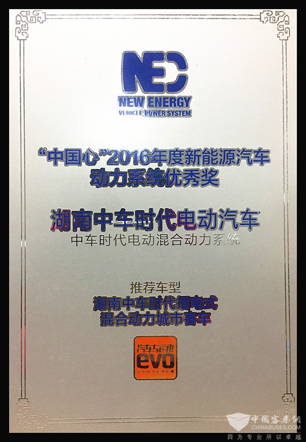 同时,“中国心”2016年度新能源汽车动力系统评选中,中车时代电动混合动力系统获“新能源汽车动力系统优秀奖”。“中国心”评选,是根据新能源汽车动力系统的特性,制定出一套符合新能源汽车动力系统的测评体系,由7名顶尖级行业专家评委进行评定,是行业最权威的评选之一。