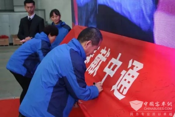 百亿不是终点,而是一个全新的开始。中通客车的发展潜力到底有几何?没人可以准确说出,即使是身处其中的每一个中通人,他们的眼光永远看向更远的前方。活动上,中通客车副总经理王兴富向全体员工宣读了“青春献中通,百亿再跨越”倡议书,希望全体员工审时度势,戒骄戒躁,为将中通客车打造成世界一流绿色客车产业集群而继续努力。