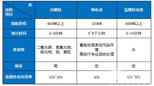 对比氢燃料电池与锂动力电池,会发现氢燃料电池更优势:首先,氢燃料电池更环保。其反应物体系开放运行,氧气和氢气源源不断进入电堆,反应生成水;其次,氢燃料电池更安全。只要切断氢气,电堆本身很安全,且管理和电堆中的氢气总量(能量)少,系统不容易出现安全问题;再次,氢燃料电池功率密度低,能量密度高。