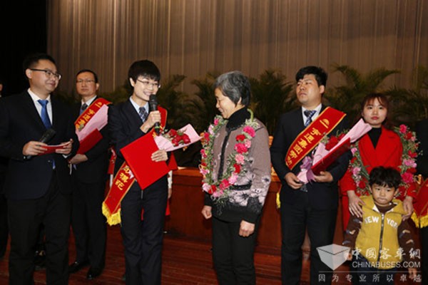 为总结经验,表彰先进,激励全体宇通人在2017年不断超越,再创辉煌,高标准实现集团各项经营管理目标,宇通对2016年度集团内部涌现出的先进个人和集体进行表彰。其中劳动模范10名,每人奖励60克金牌一枚,优秀共产党员10名、质量标兵10名、青年岗位能手10名、销售标兵10名,每人奖励50克金牌一枚。同时,宇通还对“先进集体”“客户服务‘真心英雄’奖”“最佳销售支持奖”“最佳创新奖”“效率优胜奖”“协同精神奖”“终身奉献奖”“最佳新人奖”等年度特别奖的获奖集体和个人进行表彰,通过标杆选树来倡导践行以客户为中心、高标准工作、拼搏奋斗、忠诚敬业、开拓创新、精诚协作、效率提升等行为,持续增强企业综合竞争力。