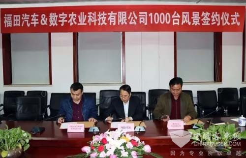 日前,以“福到数字农业 携手共赢未来”为主题的福田汽车&河南数字农业科技有限公司1000台福田风景商务车签约仪式,在福田轻型商用车事业本部隆重举行。福田商用汽车集团副总裁\福田轻型商用车业务总监赵建民与数字农业科技有限公司总经理宋自杰作为双方代表正式签约,福田商务汽车业务总监\福田轻型商用车事业本部执行副本部长潘林波、轻型商用车事业本部营销公司副总经理王明亮出席了本次签约仪式。