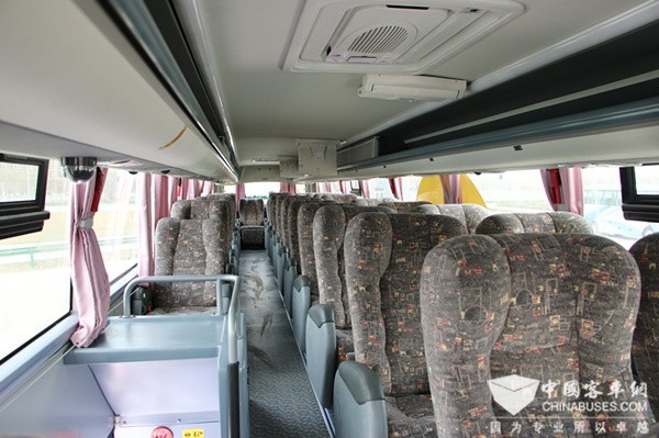 由于此类车型在南美地区一般都是跑省际或国际长途,因此中通客车在车辆的乘坐舒适性上也下足了功夫。采用了高端超软宽式座椅,配备腿托、脚踏,座椅靠背角度可达140°,乘客可半躺休息。车内配备卫生间、冰箱、饮水机、符合南美标准的220V充电接口等服务设施,上下层共布置5个DVD显示屏,减缓了乘客在长途旅途中的疲劳和孤寂。