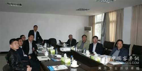 在会客室,安源客车党委书记钟龙骏对客人们的来访表示热烈欢迎。并向客人介绍了安源客车发展历史、市场销售、出口产品、产品开发、企业规划等情况。