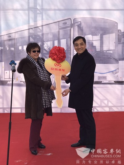 安凯客车董事长戴茂方向禹圣客运总经理顾淑丽交付新车钥匙