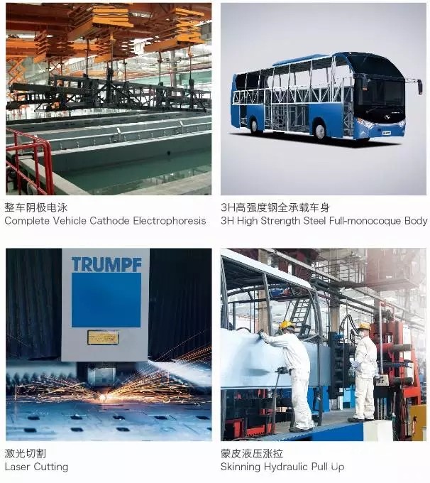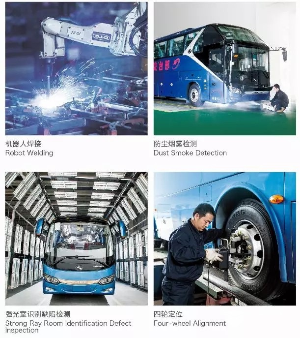 经过近30年的不断创新和积累,金龙客车创造了行业独特的“金龙生产方式”,以“工艺领先、做工细致、品质精良”而蜚声业界。金龙拥有国内领先的客车生产线和国际领先的专业化生产装备,并应用了整车阴极电泳、3H高强度全承载车身、激光切割、蒙皮液压涨拉和机器人焊接等先进制造工艺。生产组织和流程设计充分运用IE (Industrial Engineering)管理技术,不仅生产效率居于行业领先,还有效保证了生产过程品质。