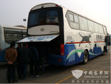 金龙客车技术人员查看车辆状态