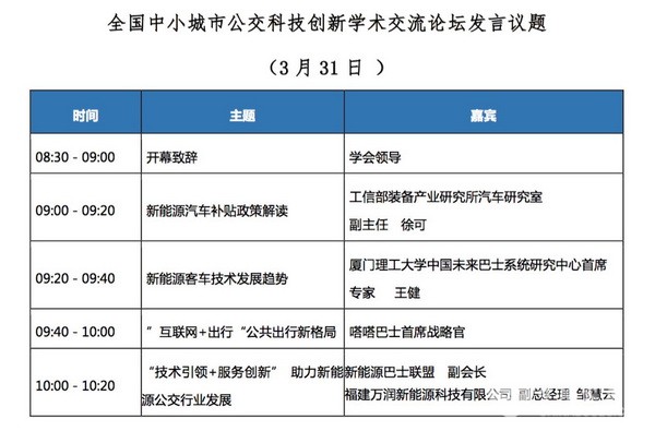 全国中小城市公交科技创新学术交流论坛发言议题