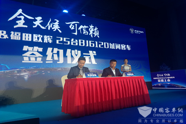 天马通驰与福田欧辉签订欧辉BJ6120、10辆欧辉BJ6117城间客车采购协议