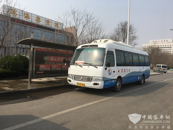 “滨海开发区常住人口不到10万人,一般只有早晚高峰时运输压力大一些。不过我们也测算过,高峰期时,像金旅D8这种8米车型也可以完全满足线路运输需求。未来,我们在采购车辆时也会优先选择7米、8米车型,避免造成资源浪费。”宋夫存说。