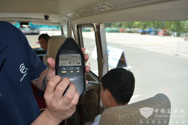 在试乘体验过程中,工作人员对该款考斯特进行了噪声实测。在发动机行使过程中,车内前部噪音为70分贝,中部为67.7分贝,后部为62分贝,给驾驶者和乘坐着都营造了一种安心惬意的环境。
