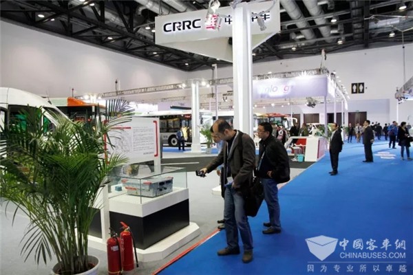 本次展会上,中车电动展出了12米纯电动客车,该款车是面向欧洲市场研发打造的高品质客车,于去年德国汉诺威国际商用车展上正式发布,采用直流双枪快充技术,并且增加了符合欧标的制动电阻。