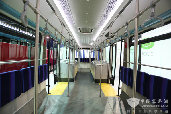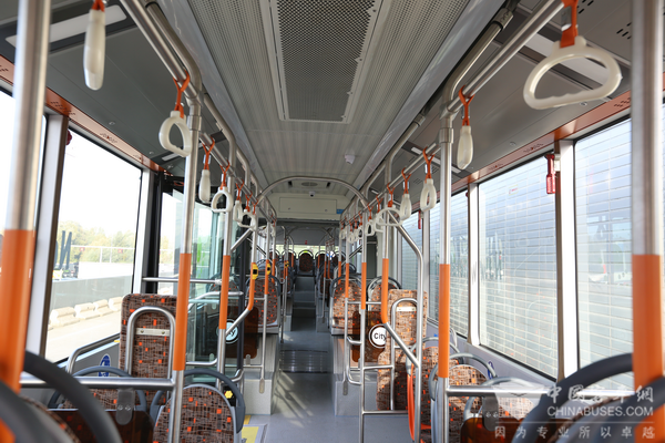 整车布置通过轴距优化,使车内座椅布局及空间利用率更合理,欧盟标准下最大座位数达到49,达到行业同级领先水平,满足BRT较大容量的交通运输求。通过对车身结构及轮辋、铰接盘及风道支架、侧窗立柱等处的材质进行优化,为车身减重高达5%,显著降低运行油耗。