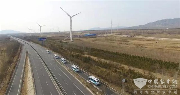 福田欧辉氢燃料电池客车行驶在北京至张家口高速