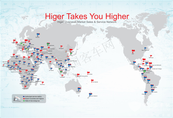 这个年轻的客车企业,一贯重视海外市场的发展,从2004年开始启动海外市场至今,产品已遍及全球100多个国家和地区,累计出口客车超4万台。其中阿尔及利亚、俄罗斯、卡塔尔等国家的海格客车保有量已超过3000辆;安哥拉、沙特、伊拉克等国家超过1000辆。