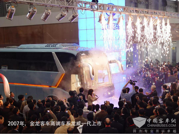 在这样背景下,2007年4月,中国客车业诞生了一款自主研发的王牌大作,金龙客车高端车系龙威面世,代表着中国自主高端客车时代的来临。龙威XMQ6129Y在世界客车博览亚洲展会上首次亮相,一举获得“BAAV2007年度客车大奖”。之后,该车型服务全国两会、北京奥运会、9.3阅兵等多个重要活动及赛事,并畅销海内外,成为中国客车工业的一个经典传奇;同年,金龙客车“发现之旅”大型品牌营销活动启动,开启了中国客车业品牌营销+产品巡展之先河;2008年,金龙客车A+海狮发布,金龙轻客进军国内市场,产品线进一步丰富......
