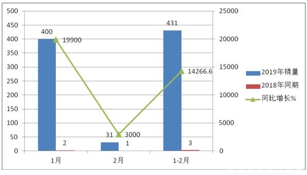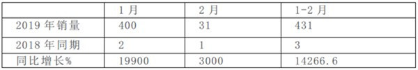 氢燃料商用车是氢燃料汽车推广的“先头部队”,尤其是氢燃料电池客车会当仁不让的充当燃料电池汽车推广示范的“马前卒”。因此,大力发展氢燃料电池客车也是应对2019年补贴新政的一个战略举措。如下图所示,2019年1-2月氢燃料电池客车的暴涨也印证了这一事实。