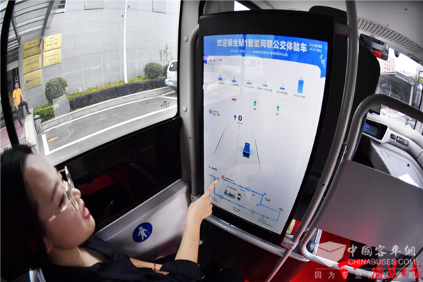 “车身配备了数十个电子控制器,传递着上千个信号,充分利用5G-V2X技术能实现与红绿灯信息交流,和智慧公交站沟通,以及道路及行人交流、其他行驶车辆互动,让车辆与城市公共交通的每个终端互联互通。”