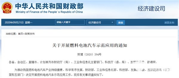 2021年8月23日,北京财政局发文称,近日由北京市牵头申报的京津冀氢燃料电池汽车示范城市群,被国家五部委(财政部、工业和信息化部、科技部、国家发展改革委、国家能源局)联合批准为首批示范城市群,北京理所当然的成为我国首批示范推广氢燃料电池汽车的主要城市。