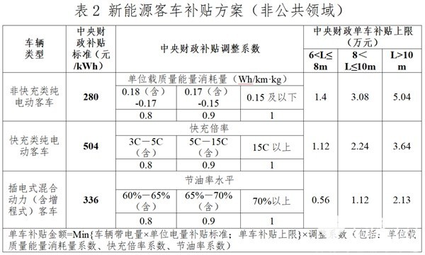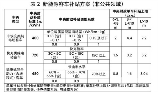根据四部委发布的最新《方案》,2022年非公共领域 的快充纯电动客车补贴(见截图1)每度电按504元来补贴,而2021年是按每度电720元来补贴,2022年比2021年每度电补贴缩水了216元;在单位载质量系数符合补贴技术要求的前提下: