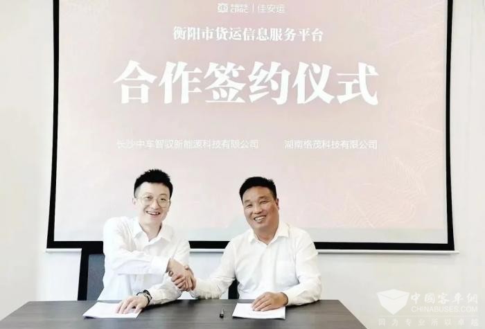 2023年10月24日,中车电动旗下长沙中车智驭新能源科技有限公司与湖南格茂科技有限公司签订了“衡阳市货运信息服务平台”项目合作协议。共同建设衡阳市“动态监控+运营平台+安全监管”三合一的货运信息服务平台体系。