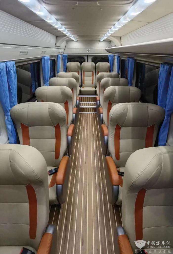 5.9米欧睿采用1+1座椅布置,有7-9座三种座位数选择;采用1+2座椅布置形式,最多可以布置16座。