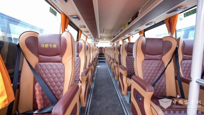 进入车内,明亮宽敞的乘坐空间、人机工程设计的豪华商务座椅,以及温馨柔和的灯光照明氛围,都让乘客们仿佛置身于头等舱之中。2+1座椅布置,使得腿部和左右乘坐空间都达到了极佳的舒适度。数字化自动温控系统、USB充电接口、车载影音娱乐和新风换气等舒适配备,更是让乘客们在旅途中享受到身心放松的美好时光。