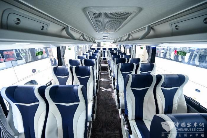尤为值得一提的是,新V系对乘客的感受给予了最大的关怀。比如乘客座椅,配合感性工学与人体工程学设计,符合人体曲线人体工程学设计,乘坐舒适感强。比如均温空调,供暖均匀、分区控制、全方位冷气、可调节出风,提升舒适性满足个性化需求。比如,可选2+1、1+1超大空间布局,让乘客豁然心情、一路开朗。比如乘坐空间,前门踏步加宽到290毫米,使乘客上下车更方便更安全;乘坐空间加宽50毫米,使乘用空间更宽敞;中间过道加大30毫米,使得行走更便捷,减少乘客通过时对其他乘客影响等。