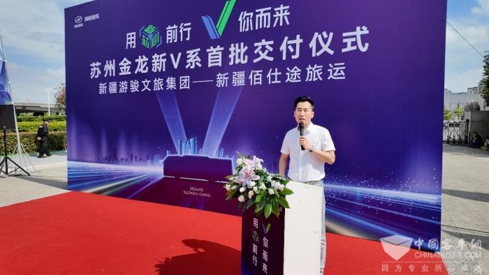 苏州金龙国内销售总监孙鸿翔在交付仪式上致辞