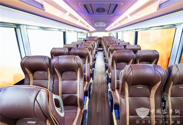 该车采用第四代全承载技术+整车骨架高强度钢,更轻量更安全,让乘客安心直达目的地,同时框架式三段式车架+超大行李舱,轻松装纳出游行李,长轴距设计也大大提升了运载效率,让乘客惬意看风景,享受身心那份宁静与愉悦。