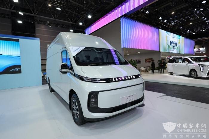 创维鸿途封闭式VAN车,配备电动侧滑门,造型方正,能有效提升车辆的装载空间。此次亮相车型采用高顶结构,对开式270°尾门,日常作业更加方便。