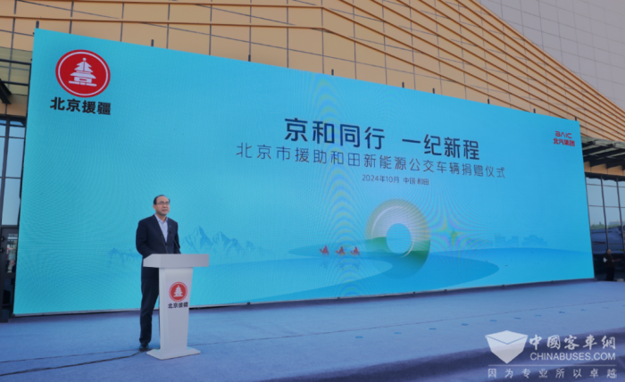 北汽集团党委常委、副总经理,北汽福田党委书记、董事长常瑞在捐赠仪式上致辞,常瑞表示,深入贯彻党中央治疆方略,对口支援、助力新疆发展是北京市属企业义不容辞的政治使命,和田地区是北京市深入贯彻国家对口援疆政策的前沿阵地。