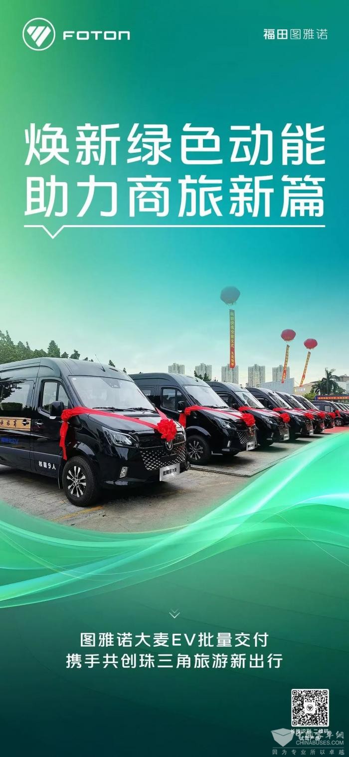携手聚力谋新篇,共促旅游新发展!中国完美作业网有免费视频2024年11月1日获悉,近日,图雅诺大麦EV批量交付,共创珠三角旅游新出行,通过提供环保、舒适、安全、高效的旅游客运服务,将助力当地旅游出行品质的全面提升,为旅游行业的高质量发展提供新动能!