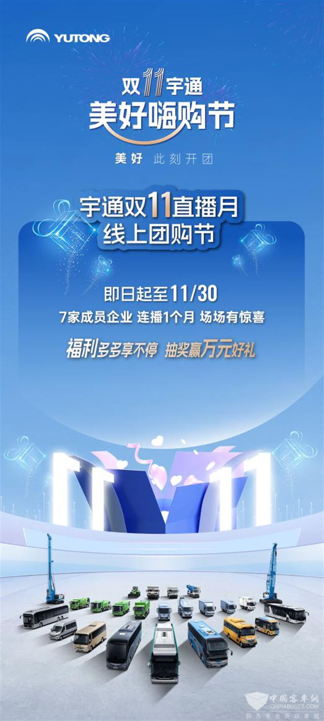 据了解,为迎接双十一,宇通集团集合旗下七大成员企业,推出了极具诚意的优惠政策,并进行一整个月的常态化直播活动,旨在让更多消费者有机会深入了解宇通各品牌的产品信息。并且,宇通将精心筹备的“线上团购会”专场直播安排在了2024年11月18日至20日,有意避开了双十一当天的“巅峰时段”。