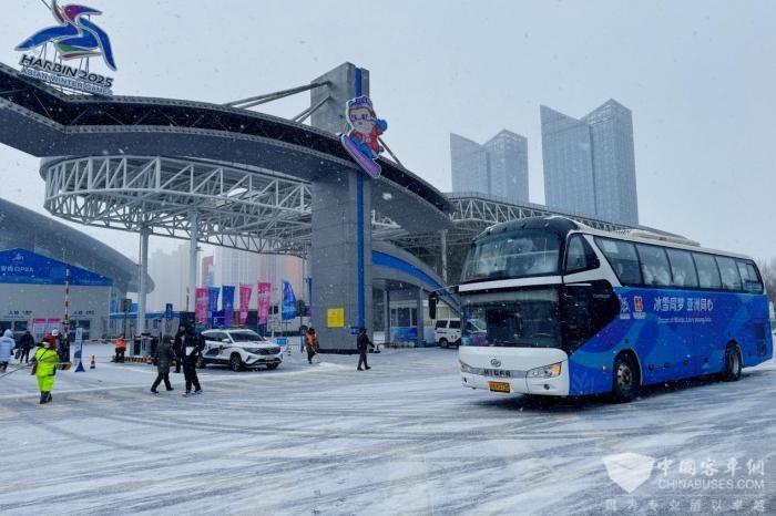冰雪同梦,亚洲同心,亚冬会精彩继续!本届亚冬会是继2022年北京冬奥会后中国举办的又一重大国际综合性冰雪盛会,“尔滨”又一次凭借自己的独特魅力,霸榜热搜。亚冬会期间,哈尔滨的气温一度低至零下20多摄氏度。在这样的环境下,出行保障无疑成为了一项严峻的挑战,黑龙江索菲亚旅游客运有限公司携手苏州金龙海格客车共同为盛会保驾护航,提供舒适、安全、高效的通勤服务。