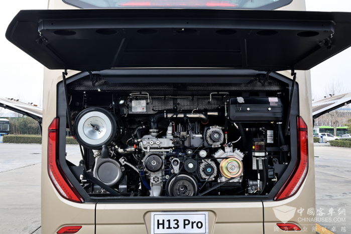 除了宽敞的乘坐空间,H13Pro还通过优秀的降噪技术,进一步提升NVH水平,乘坐车内,仿佛置身于一个静谧的休憩空间。这对于高端定制游、长途旅游乘客来说,无疑是一个福音。不仅如此,驾驶体验也进一步升维。潍柴WP12H+10级AMT变速箱组合,大大减轻驾驶员劳动强度,操控性更优。
