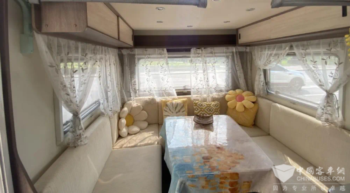 空间宽敞舒适: 依维柯欧胜房车内部空间规整且超大,孩子活动不受限,吃喝拉撒睡车内解决,省心!