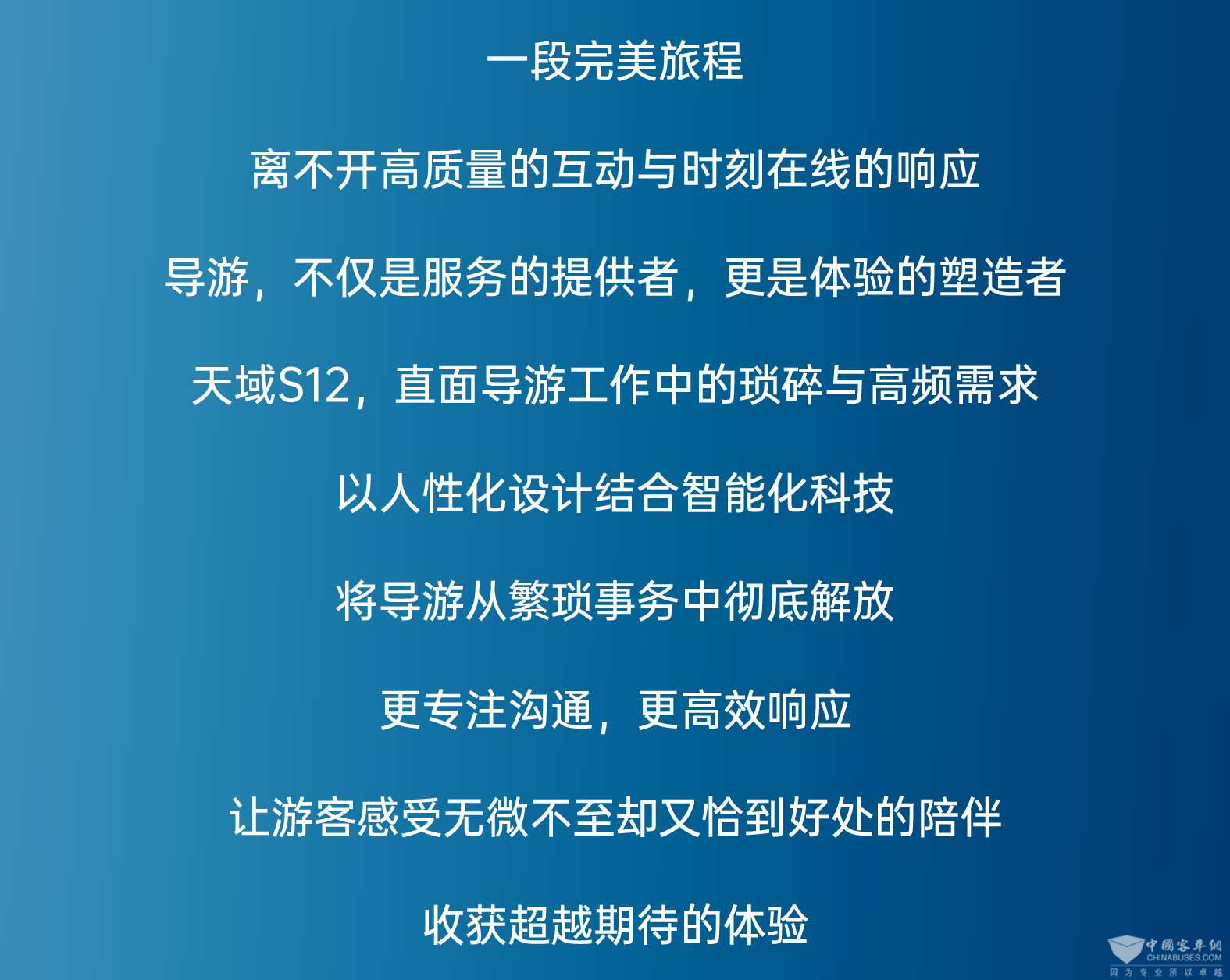 天域S12,直面导游工作中的琐碎与高频需求,以人性化设计结合智能化科技将导游从繁琐事务中彻底解放,更专注沟通,更高效响应,让游客感受无微不至却又恰到好处的陪伴,收获超越期待的体验。