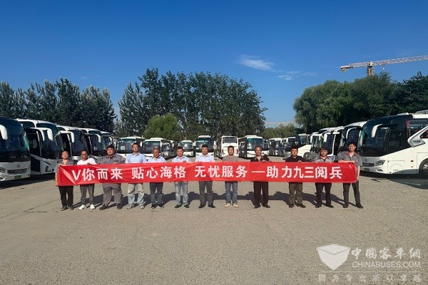 据苏州金龙驻外服务工程师孔祥树介绍,此次承担九三阅兵接驳任务的海格客车共计超260台,所有参与保障的车辆均经过严格筛选,以车队形式分布在北京市多个区域。车型包括海格新V系纯电客车、旅行家氢燃料客车等新能源主力产品,充分体现了绿色低碳的发展理念。