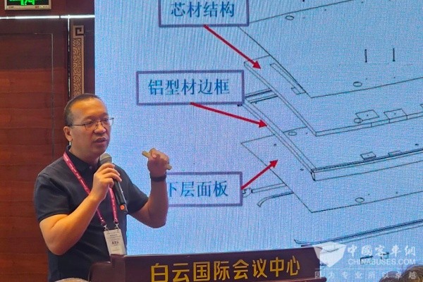 此次发布的AeroLite复合顶盖采用多项创新设计与工艺,包括薄面板应用、变截面复合、嵌入式预埋、芯材内部过线、硬质泡沫封口及多强度等级螺栓预埋等。与传统碳钢顶盖相比,复合顶盖在保证机械强度与安全性的同时,大幅降低重量,提升整车能效与经济性。
