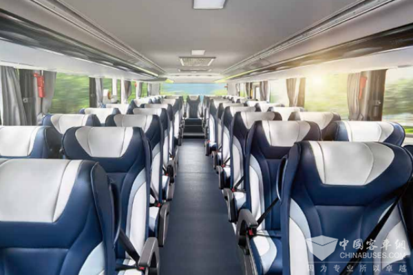 空间设计更是打破行业瓶颈,以“油电同方,不亏舱”解决痛点:7m³超大行李舱比肩同级燃油客车,化解“长途旅游行李放不下”难题;600mm超宽乘客通道与“行业最低踏步高度”,便利老人、儿童及携带大件行李的乘客上下车。车内环境同样用心:“阳光房式”透光车顶搭配氛围灯,营造通透感;人体工程学座椅结合NVH源头降噪设计,将行驶噪音控制在60分贝以下,缓解长途疲劳。