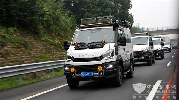 2025年10月16日晨,成都平原,多云。 上午八时整,由六辆依维柯欧霸·山海越野车组成的车队,如列队的雄鹰,在晨光中蓄势待发,引擎低沉的轰鸣与晨鸟的啼鸣共同奏响了“越野越行·真四驱越野专线”活动西行的序章。