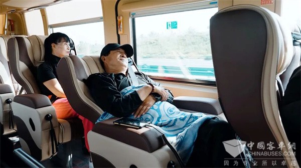 其二,是与客户交流的共情能力。 基于资深旅行者的经验,壹凡旅行的团队更能理解客户内心深处的需求。“我们和客人聊的不是购物点,而是光影、机位、某个山谷花开的时间,或者哪里能拍到最美的星空。”白继平说。这种基于共同爱好的交流,让他们和客户的关系更像是结伴同行的旅友,也正因如此,他们愿意且能够为客户做个性化的调整。宇通C12L原厂定制“1+1”商务座椅,支持141°半躺调节,让乘客在漫漫长路中可半躺休憩,为壹凡旅行打造高品质定制化旅行线路奠定了坚实基础。