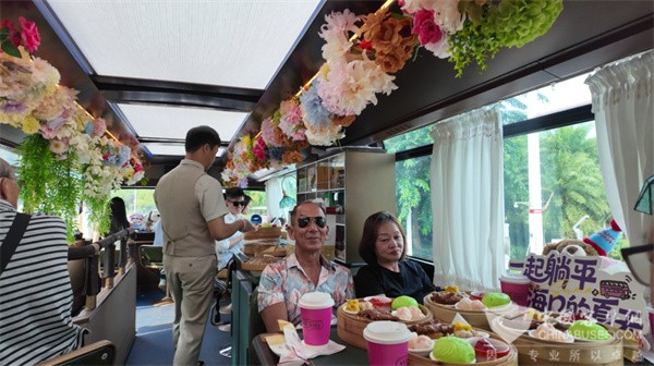 “为什么要把老爸茶和双层巴士结合?”面对这个问题,“老爸茶”海口巴士乘务长李献戟的回答满是对本土文化的热爱:“老爸茶是海南人刻在骨子里的生活方式,而观光巴士是游览城市风景的最佳载体。我们想做的,就是把本地人的日常,搬到车上——让游客一边看风景,一边喝茶,沉浸式感受海口的烟火气。”