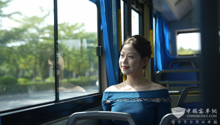 车内的座椅柔软舒适,车窗宽敞明亮,刚坐稳,公交便缓缓启动,几乎感受不到传统公交车的颠簸与噪音,只有电机运转的静谧,让人能安心沉浸在沿途的风景里。