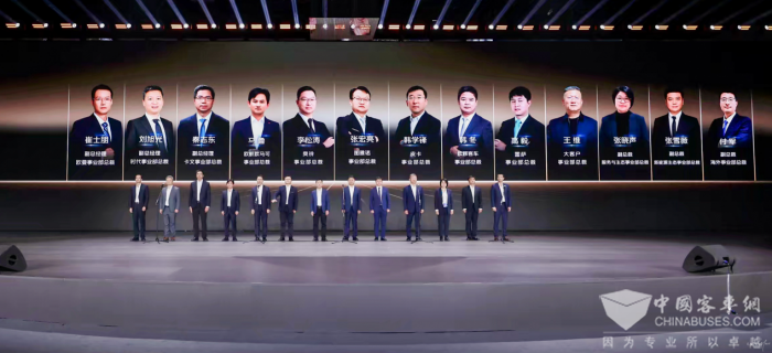 2026年目标的达成,离不开业务端与区域端的协同攻坚。大会伊始,13位事业部总裁与13位区域营销中心负责人(含12位中心总经理及分管领导)集体亮相,展现了福田“主力作战部队+战区支援中心”的矩阵式作战体系。作为福田与合作伙伴结成的“发展与利益共同体”,这支核心团队既是战略落地的关键抓手,也是赋能渠道、联接伙伴的坚实桥梁,他们将带领团队践行 “敢于竞争、敢于胜利” 的宣言,推动营销变革、渠道优化、政策落地等举措直达终端,为全年销量增长与高质量发展提供坚实保障。