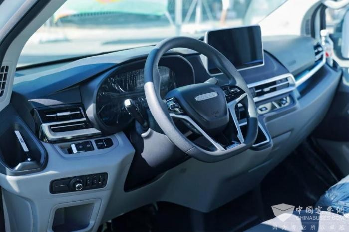 聚星纯电动车配备了12.3寸高清触控大屏集成了倒车影像和智能交互系统,让车辆的智能化水平大幅提升。四辐式多功能方向盘集成了定速巡航、蓝牙电话、多媒体调节等多项功能,极大地提升了行车操控的便利性。特别是在南通酷热的八月评测时,车辆启动后仅需数秒,驾驶室温度便显著下降,高效的空调系统为驾乘者带来了清凉舒适的体验。